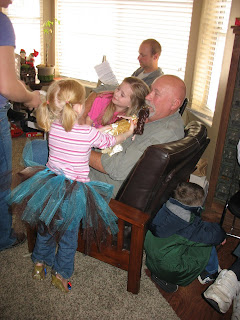 The good thing is, it did feel like we were reliving Christmas morning over and over- probably because we did. First, on Christmas Eve we celebrated and opened gifts with my parents.  We had dinner with them and then went to their church to sing Christmas songs.  Next, on Christmas day we opened gifts at our house with just our little family.  I am amazed at all the mess that is still strewn all over from this one event.  And after bringing home the gifts from our families there is even more to put away- but in our tiny house I am struggling to find a place to put everything.  Anyway, finally we headed to Kole's parents' house and plundered what was left of the presents there.   We also had brunch with even more family members and listened to Kole's brothers "play" rock band on PS2.  I have an embarrassing video involving Kole and Damion and a "No Doubt" song but I decided not to release it on the web.   You both should thank me.  No worries though, there are other pics of everyone here which are equally awkward.  Anyways, good times all around.  We all got sooooo spoiled- not just the kids.